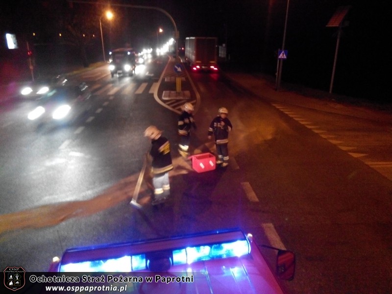 Dnia 26.11.2013 o godzinie 05:25 PSK Sochaczew zadysponował OSP Paprotnia do rozlanego oleju napędowego na skrzyżowaniu ulic Warszawska - XX lecia. Na miejsce wyjechaliśmy SLrt volkswagen LT 40. Przy pomocy sorbentu olej został zneutralizowany. Działania zakończyły się po godzinie czasu. Udział brało 5 strażaków
