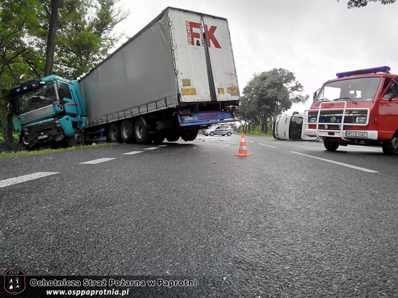 Dnia 21 sierpnia około godziny 9 PSK w Sochaczewie zadysponowalo OSP Paprotnię do wypadku drogowego w miejscowości Chrzczany na trasie krajowej nr. 2. Do zdarzenia wyjechaliśmy na dwa wozy - SLRt i GBA. Nasze działania polegały na zabezpieczeniu miejsca zdarzenia i neutralizacji płynów wyciekających z rozbitych pojazdów oraz kierowani ruchem drogowym. W wyniku zderzenia samochodu ciężarowego i dostawczego zostały poszkodowane dwie osoby. Razem z nami akcje prowadził JRG Sochaczew. W akcji brało udział 7 ratowników z Paprotni. Akcja trwała około 5 godzin.