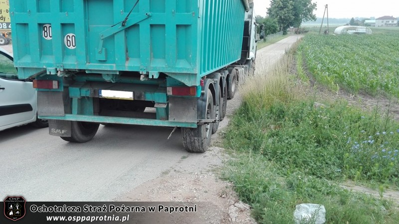 12.06.2018, o godzinie 8.03, na DK92 w miejscowości Paprotnia doszło do wypadku samochodu osobowego i ciągnika siodłowego z naczepą. Samochodem osobowy podróżowały 3 osoby, które po udzieleniu pierwszej pomocy zostały przetransportowane do szpitala. Jedna osoba z uwagi na jej stan zdrowia została przetransportowana śmigłowcem LPR. Działania straży polegały na zabezpieczeniu miejsca zdarzenia,udzieleniu kwalifikowanej pierwszej pomocy poszkodowanym przed przyjazdem Zespołu Ratownictwa Medycznego, odłączeniu akumulatorów oraz sorpcji rozlanych płynów eksploatacyjnych. SiŚ: OSP Paprotnia GBARt, OSP Niepokalanów SLRt, JRG Sochaczew GBA, SLRt, Dowódca JRG, ZRM x2, Policja, LPR