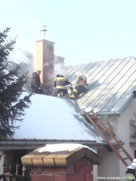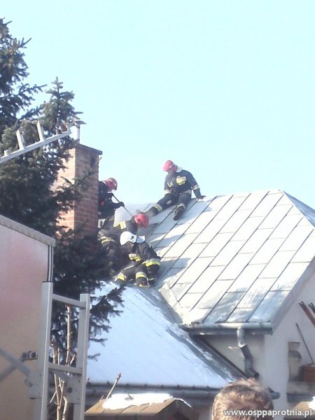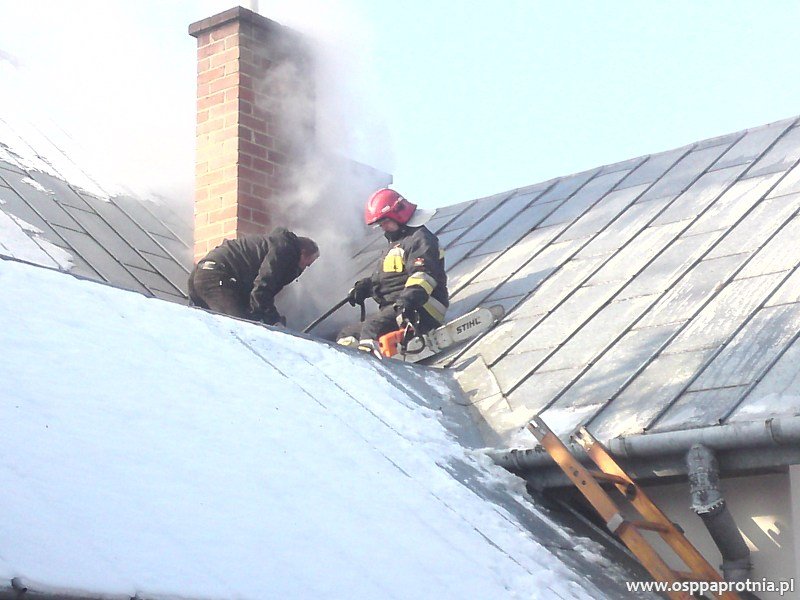 W niedzielę 12 lutego o godz. 9.56 Ochotnicza Straż Pożarna w Paprotni została zadysponowana przez PSK w Sochaczewie do płonącego poddasza w budynku mieszkalnym na ul. Poziomkowej w Paprotni. Na miejsce dojechaliśmy jako pierwsi. Podaliśmy jeden prąd wody z szybkiego natarcia na płonący dach, aby ułatwić dostęp do miejsca pożaru musieliśmy przy pomocy piły rozciąć dach. Dwóch ratowników z OSP oraz dwóch ratowników z PSP prowadziło działania wewnątrz budynku w aparatach oddechowych. PSP Sochaczew podała jeden prąd wody z szybkiego natarcia do środka budynku. Na miejscu były OSP Niepokalanów GBA, OSP Paprotnia GBA oraz PSP Sochaczew GCBA oraz SHD 25 . Obecnych było 10 strażaków z OSP Paprotni. Na szczęście nikt nie został ranny.