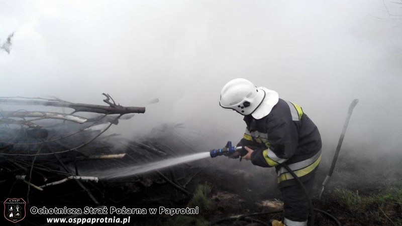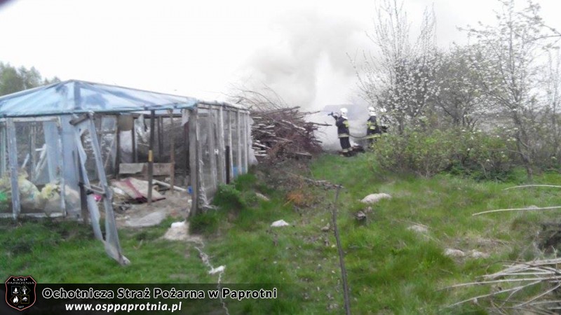 W dzisiejszy (26.04.2015), niedzielny poranek, tuż po godzinie szóstej rano, nasza jednostka została zadysponowana do pożaru sterty suchych gałęzi w Paprotni. Na miejsce udaliśmy się zastępem 639[M]79 - GCBA 5/32 Scania P370 CB4x4EHZ/PS Szczęśniak w sześcioosobowej obsadzie. Nasze działania polegały na ugaszeniu pożaru przy pomocy dwóch linii szybkiego natarcia, przerzuceniu tlących się gałęzi i ponownym przelaniu ich wodą. Akcja została zakończona po 1,5 godziny.