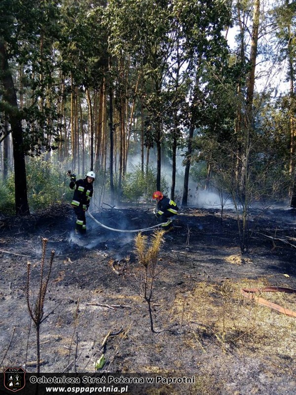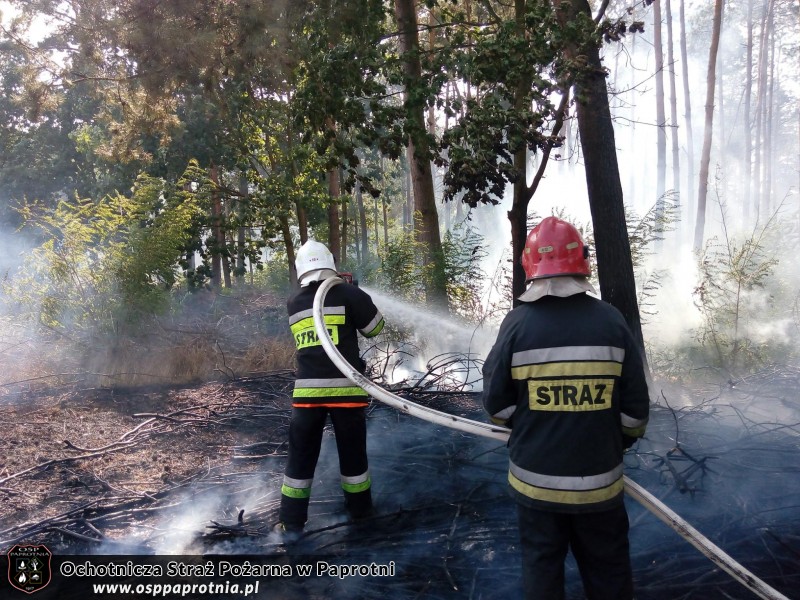 Kolejne trzecie już wezwanie wpływa o godzinie 14.15 o pożarze poszycia leśnego w miejscowości Gawłów za szkołą. Na miejsce zostaje zadysponowany PSP Sochaczew 631[M]21 – GBA 2,5/24 Renault Midlum 220.14, OSP Paprotnia 639[M]79 – GCBA 5/32 Scania oraz OSP Rybno. Po dojeździe na miejsce zdarzenia okazało si ze pożarem objęte jest około 200m2 łąki i pożar przenosi się na sąsiedni las. Działania strażaków polegały na podaniu dwóch prądów wody na paląca się łąkę i las oraz ochronie przyległych budynków. Działania zakończyły się po 1,5h. Zatankowaliśmy samochód z najbliższego hydrantu i ponownie byliśmy zadysponowani do następnego pożaru. W akcji brało 6 druhów.