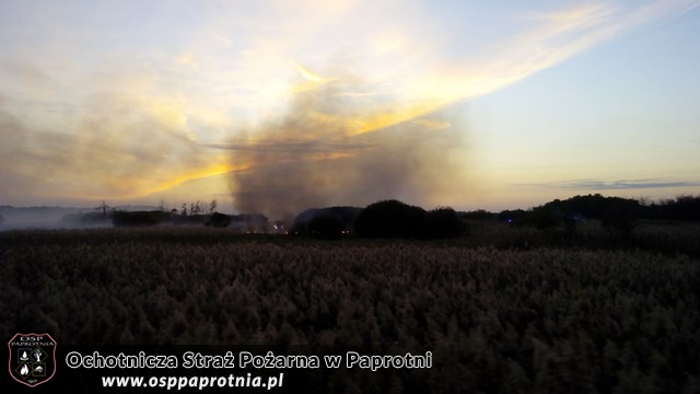 Dnia 11.10.2015 o godzinie 17:26 PSK w Sochaczewie zadysponował trzy jednostki gminy Teresin - OSP Paprotnia, OSP Niepokalanów oraz OSP Szymanów do pożaru suchych traw i trzcinowisk w miejscowości Famułki Brochowskie (gmina Brochów). Na miejsce udaliśmy się Scanią GCBA 5/32 w obsadzie 6 druhów. Nasze działania polegały na przelewaniu żarzącego się pogorzeliska przy pomocy szybkiego natarcia oraz przerzuceniu i zlaniu wodą palących się kopek suchej trawy. Działania strażaków trwały do późnych godzin wieczornych. Akcję gaśniczą prowadziły następujące jednostki OSP (Brochów, Kromnów, Miszory, Śladów, Wólka Smolana, Kamion, Budy Stare, Młodzieszyn, Witkowice, Niepokalanów, Paprotnia, Szymanów). W sumie udział brało 61 strażaków OSP i 5 strażaków z PSP Sochaczew.