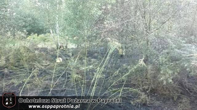 Zebranie Sołectwa Paprotnia przerwała nam syrena. OSP Paprotnia została zadysponowana do pożaru lasu i trawy. Dojazd do miejsca zagrożenia był bardzo utrudniony. Musieliśmy przejechać przez pola i łąki. Na miejscu już działała jednostka z Gawartowej Woli, która rozwinęła dwie linie gaśnicze a OSP Paprotnia jedną linie szybkiego natarcia. SIŁY I ŚRODKI: OSP Paprotnia, OSP Gawartowa Wola